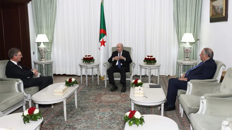 استقبل رئيس الجمهورية السيد عبد المجيد تبون، اليوم الثلاثاء، رئيس مفوّضية الاتحاد الأوروبي بالجزائر، توماس ايكارت.