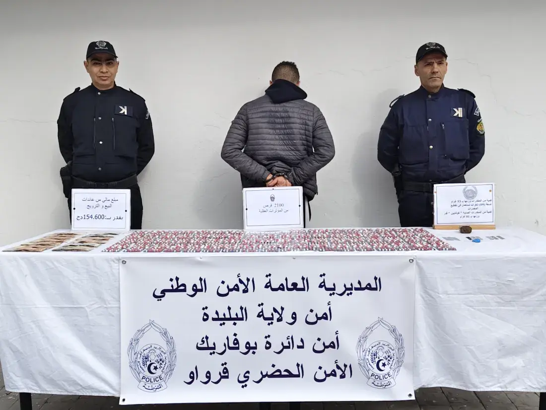تمكنت فرقة البحث والتدخل (BRI) التابعة لأمن ولاية وهران من تفكيك شبكة إجرامية ناشطة في الجهة الغربية من البلاد مما أدى إلى توقيف أربعة أشخاص وحجز 45 كيلوغراماً من الكيف المعالج