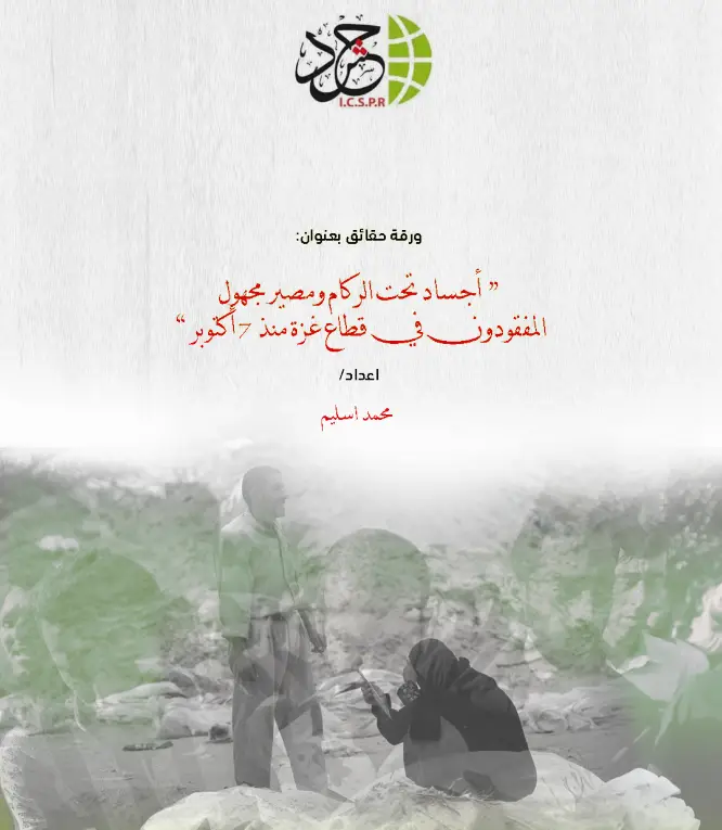 أصدرت الهيئة الدولية لدعم حقوق الشعب الفلسطيني “حشد” ورقة حقائق جديدة بعنوان “أجساد تحت الركام ومصير مجهول: المفقودون في قطاع غزة منذ 7 أكتوبر”، أعدّها الباحث محمد اسليم، كشفت فيها عن معطيات صادمة توثّق حجم جريمة الفقدان والاختفاء القسري في غزة منذ بدء العدوان الإسرائيلي في السابع من أكتوبر 2023، والذي رافقته أعمال إبادة جماعية وتدمير واسع للبنية التحتية والسكنية.